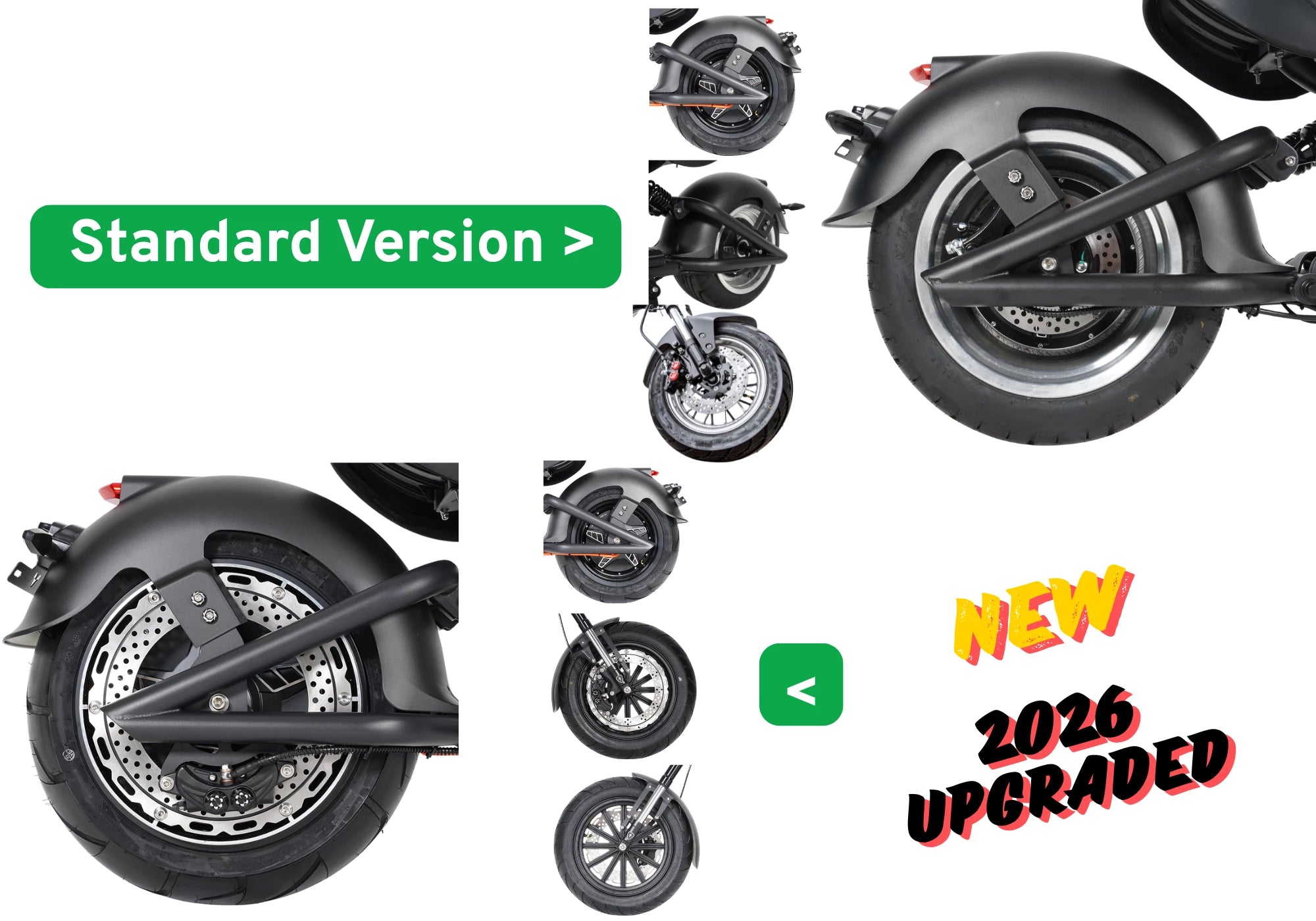 2. Rear wheel upgraded from 12 inches to 13 inches.